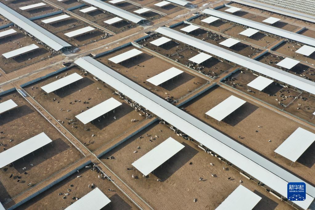 這是2月16日在武威市古浪縣生態(tài)奶牛產(chǎn)業(yè)園拍攝的一家企業(yè)牧場(chǎng)的奶牛棚圈(無(wú)人機照片)。