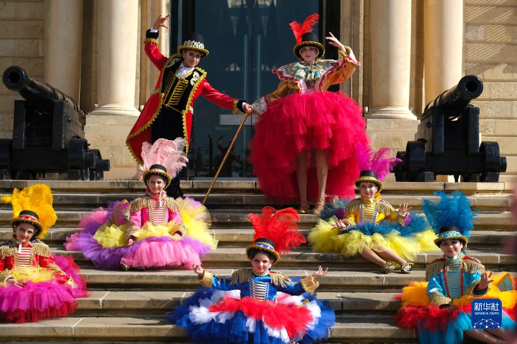 2月20日,在馬耳他瓦萊塔,人們參加狂歡節巡游活動(dòng)。