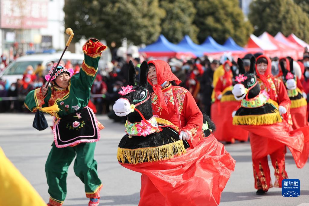 2月21日,在江蘇連云港市贛榆區墩尚鎮,人們在“二月二龍抬頭”民俗表演活動(dòng)中表演節目。