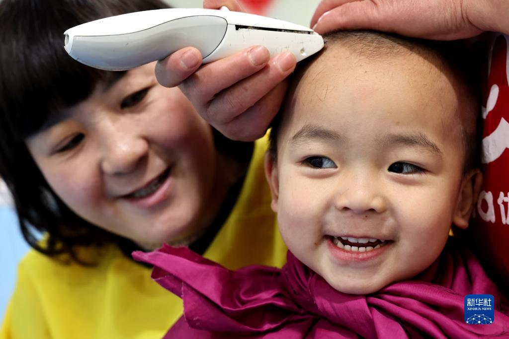 當日是農歷二月初二,許多家長(cháng)帶著(zhù)孩子“剃龍頭”,祈求孩子在新的一年健康成長(cháng)。