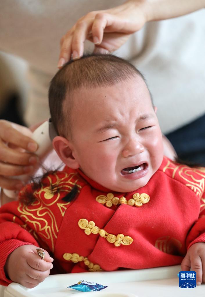 當日是農歷二月初二,許多家長(cháng)帶著(zhù)孩子“剃龍頭”,祈求孩子在新的一年健康成長(cháng)。