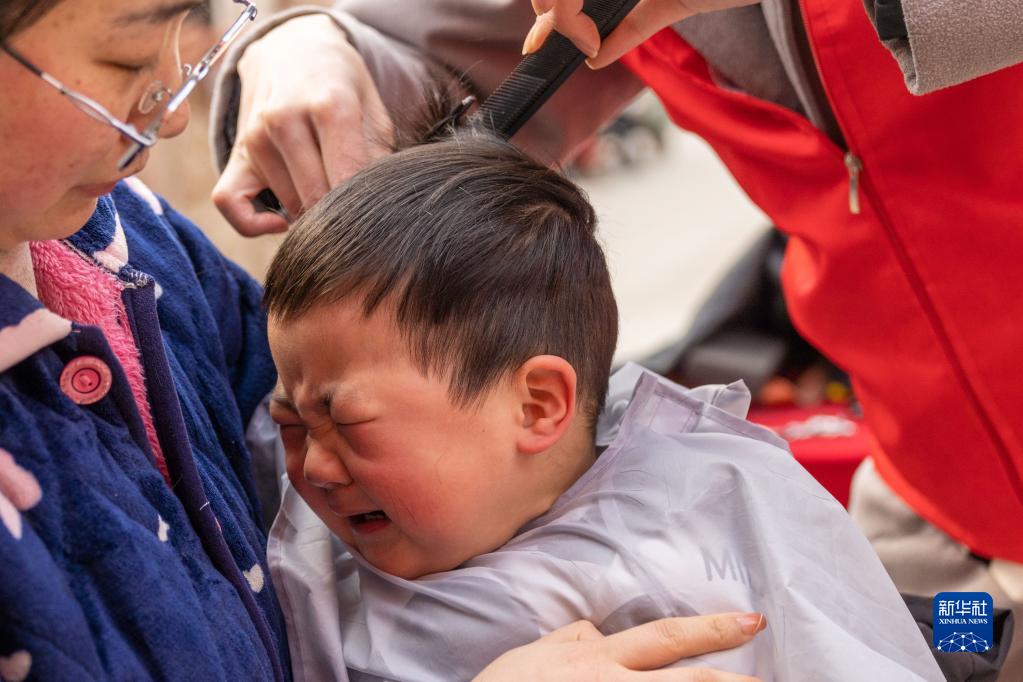 當日是農歷二月初二,許多家長(cháng)帶著(zhù)孩子“剃龍頭”,祈求孩子在新的一年健康成長(cháng)。