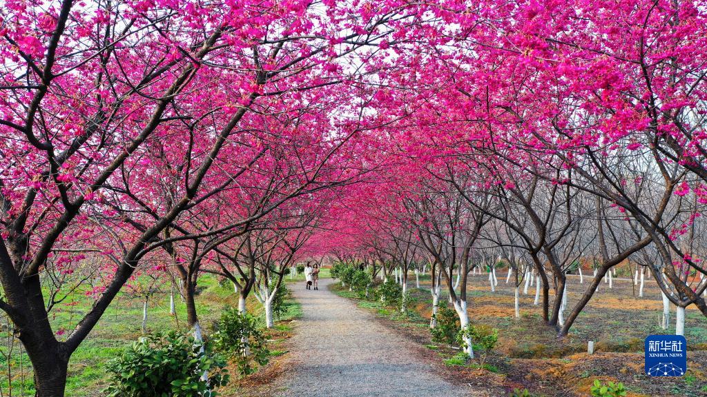 近日,湖南省常寧市羅橋鎮廟山村櫻花園櫻花爛漫,吸引游客前來(lái)踏青賞花,樂(lè )享春光。