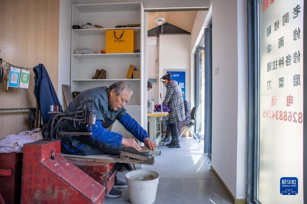 2月21日,磨刀匠在“幸福格子鋪”內為社區居民提供磨刀服務(wù)。在杭州市上城區丁蘭街道的場(chǎng)地和設備支持下,便民服務(wù)單位免費入駐“幸福格子鋪”,為周邊社區的4萬(wàn)余名居民提供小家電維修、衣物縫補、修鞋、理發(fā)等便民服務(wù)。