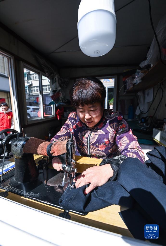 2月21日,邱芝英在浙江省杭州市富陽(yáng)區銀湖街道高橋社區的便民服務(wù)亭內給居民縫補褲子。該便民服務(wù)亭由社區提供,免租金和水電費,同時(shí)還組織黨員志愿者定期進(jìn)行周邊環(huán)境保潔。銀湖街道在打造現代社區的過(guò)程中,設置多個(gè)“小修小補”便民服務(wù)亭,積極打造便民生活圈、滿(mǎn)足居民日常生活需求。