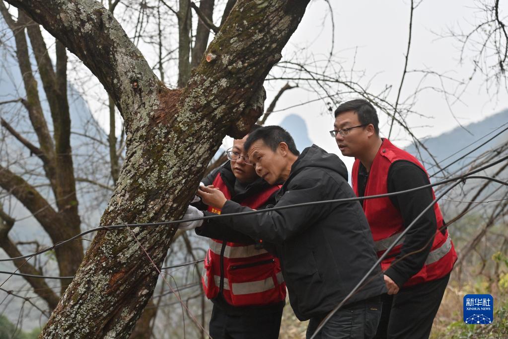 2月21日,在融安縣東起鄉銅板屯,駐村第一書(shū)記和村民在管護老李樹(shù)。