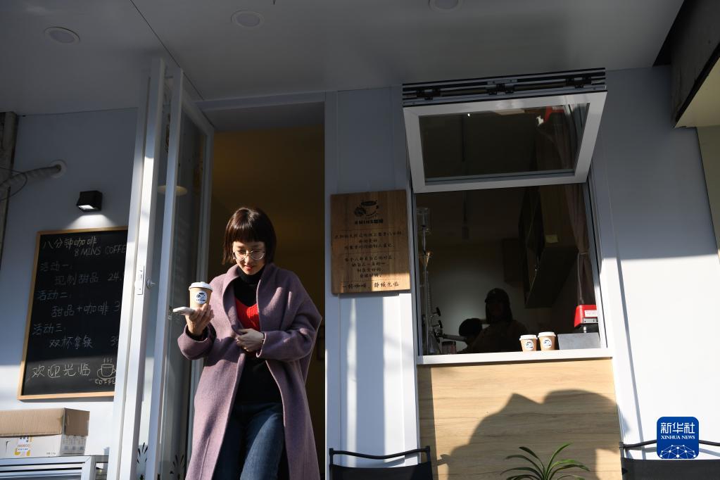 2月20日,客人在楊倩的咖啡店里購買(mǎi)咖啡后離開(kāi)。