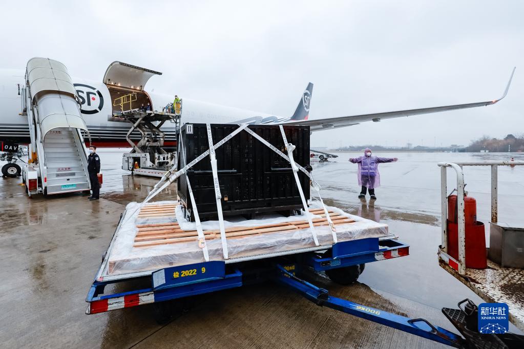 2月21日,大熊貓“香香”搭乘順豐航空貨運包機抵達成都雙流國際機場(chǎng)。