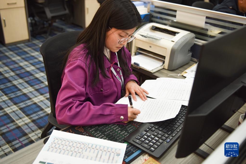 2月21日,在西寧市圣源地毯集團有限公司設計銷(xiāo)售車(chē)間,一名藏毯設計師在繪制圖案。