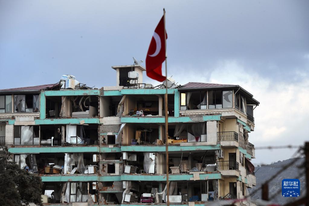 這是2月21日在土耳其哈塔伊省拍攝的在地震中受損的房屋。