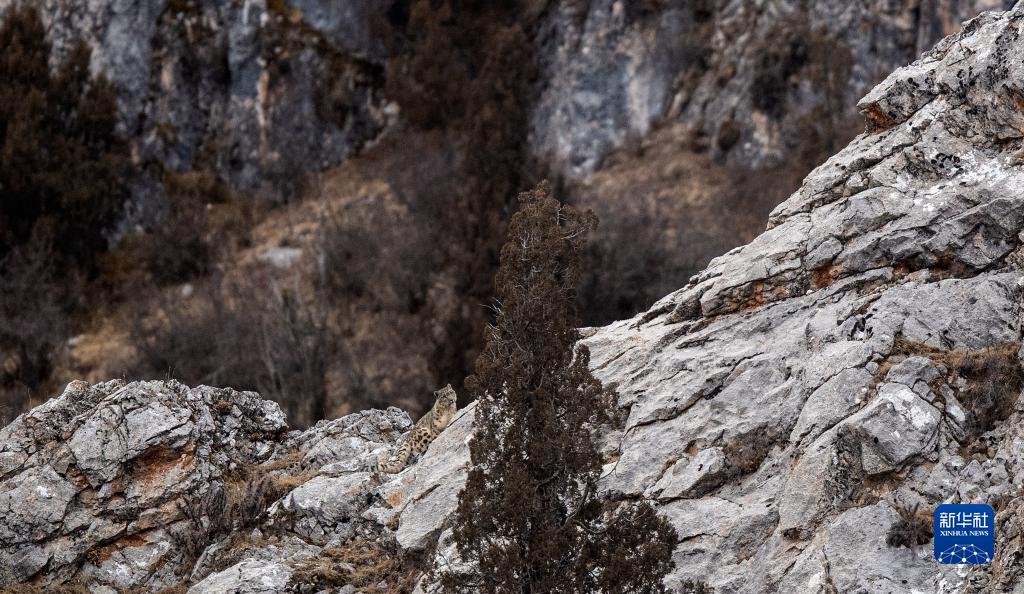 2月21日,在青海省玉樹(shù)藏族自治州雜多縣昂賽鄉境內的昂賽大峽谷內,一只雪豹正在休息。