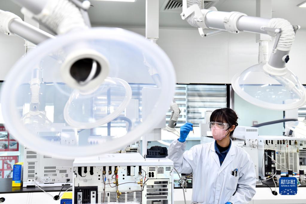 2月21日,在山東安舜制藥有限公司,工作人員做哌拉西林檢測試驗。