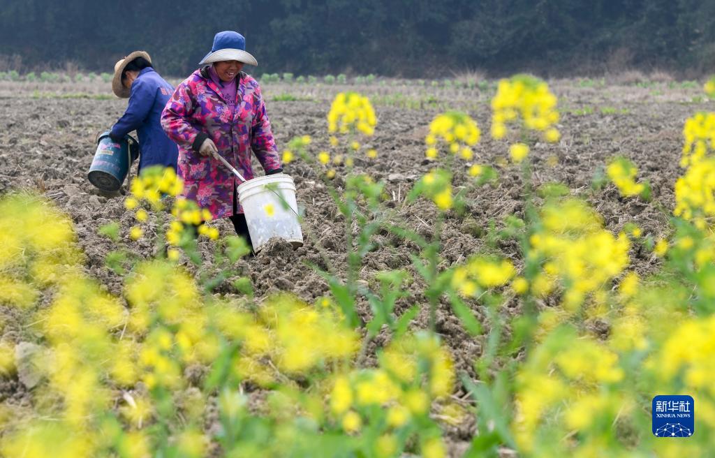 2月22日,在湖南省永州市道縣清塘鎮樓田村,農民在田間勞作。
