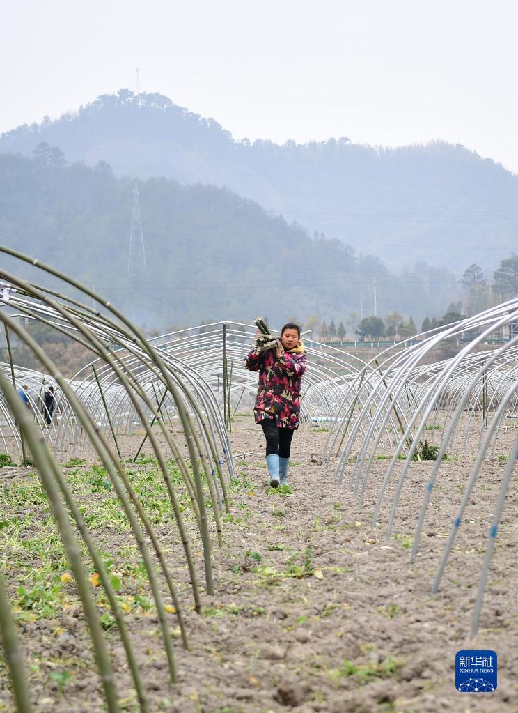 2月22日,農民在湖南省邵陽(yáng)市城步苗族自治縣蔣坊鄉太和村搭建鋼架大棚,為種植西瓜做準備。