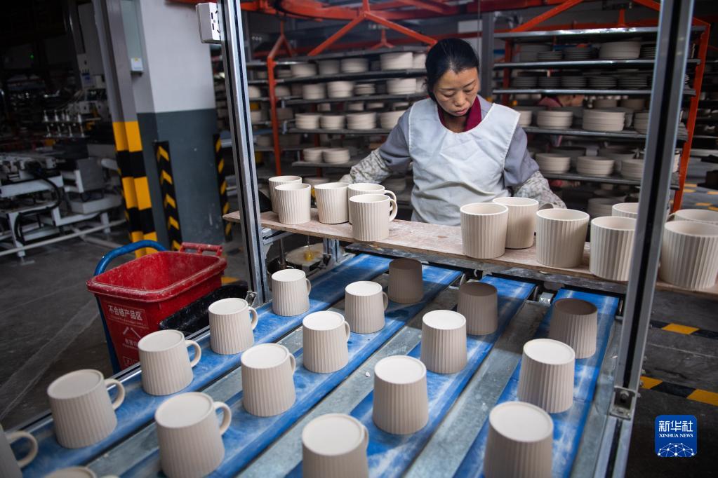 2月22日,在位于醴陵市的湖南華聯(lián)溢百利瓷業(yè)有限公司生產(chǎn)車(chē)間,工作人員在檢查瓷杯半成品質(zhì)量。