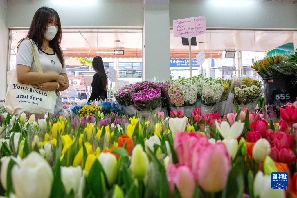 2月21日,顧客在泰國曼谷帕空鮮花市場(chǎng)挑選來(lái)自云南的鮮花。