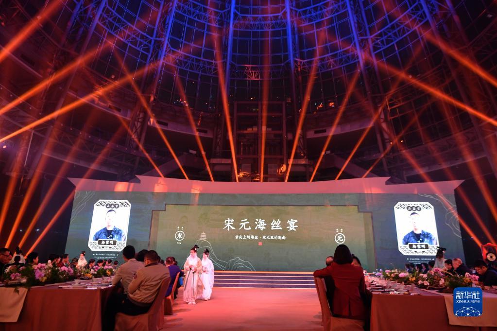 當日,福建泉州石獅市舉辦“閩菜地標美食城市”授牌暨“宋元海絲宴”推介儀式?!八卧=z宴”以南宋福建泉州石獅籍美食家林洪著(zhù)作《山家清供》為還原藍本,兼收閩南名菜,集山珍、海味于一席,將菜品、宴席與宋元器皿、場(chǎng)景、樂(lè )曲、詩(shī)詞等融合,展現宋元時(shí)期世界海洋商貿中心獨特的美食文化。新華社記者 魏培全 攝