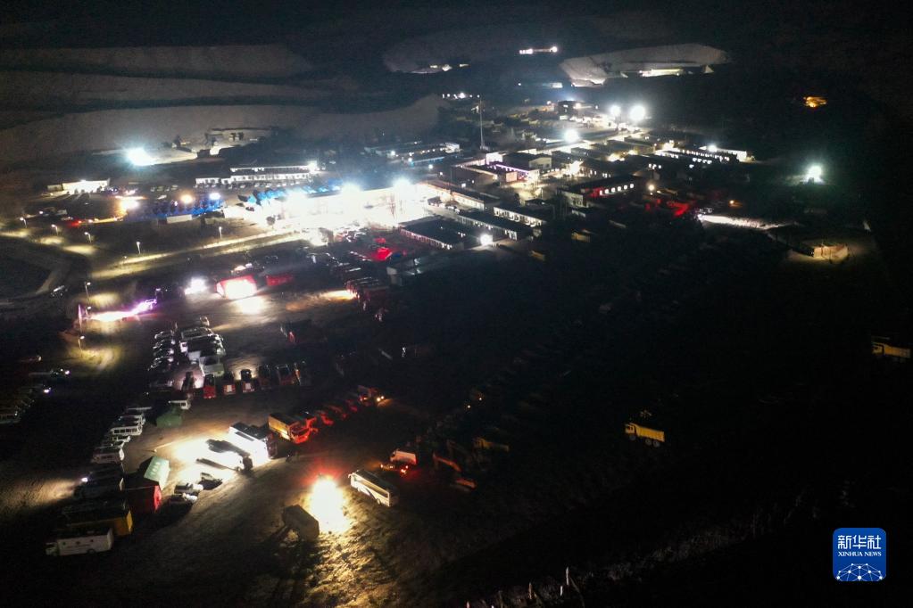 2月23日凌晨,各救援隊伍在內蒙古自治區阿拉善盟阿拉善左旗新井煤業(yè)有限公司集結(無(wú)人機照片)。