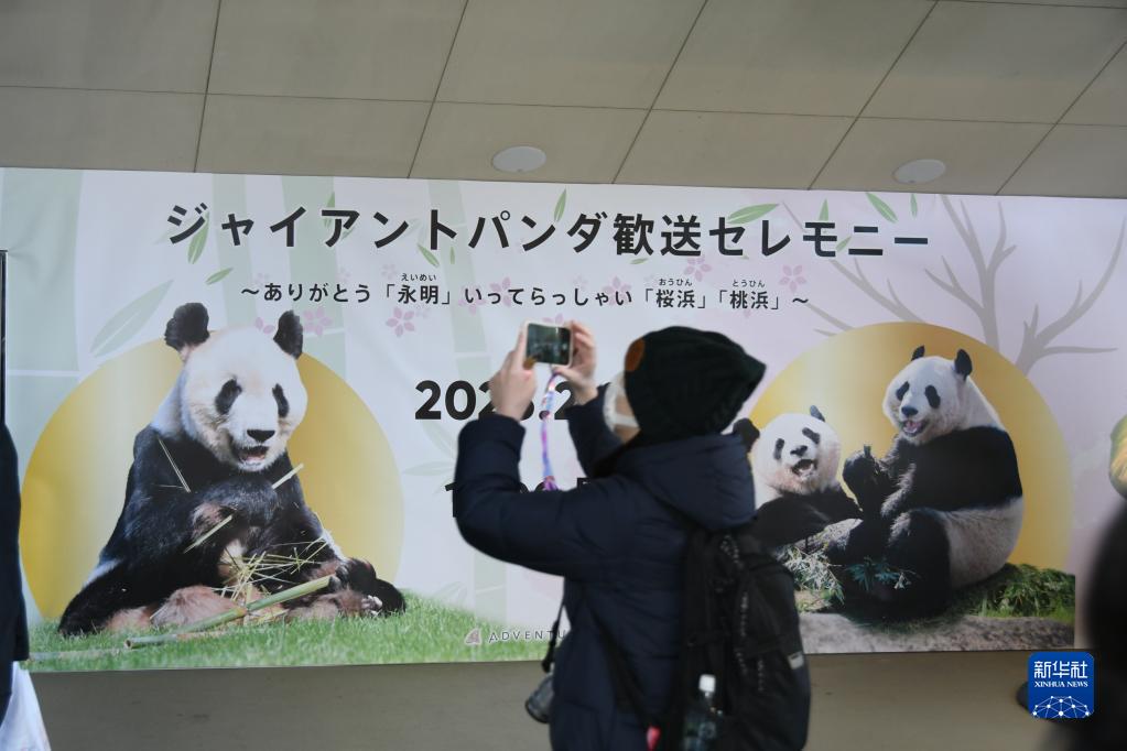2月21日,在日本和歌山縣白浜町的“冒險世界”樂(lè )園,游客入場(chǎng)參加三只大熊貓的歡送會(huì )。