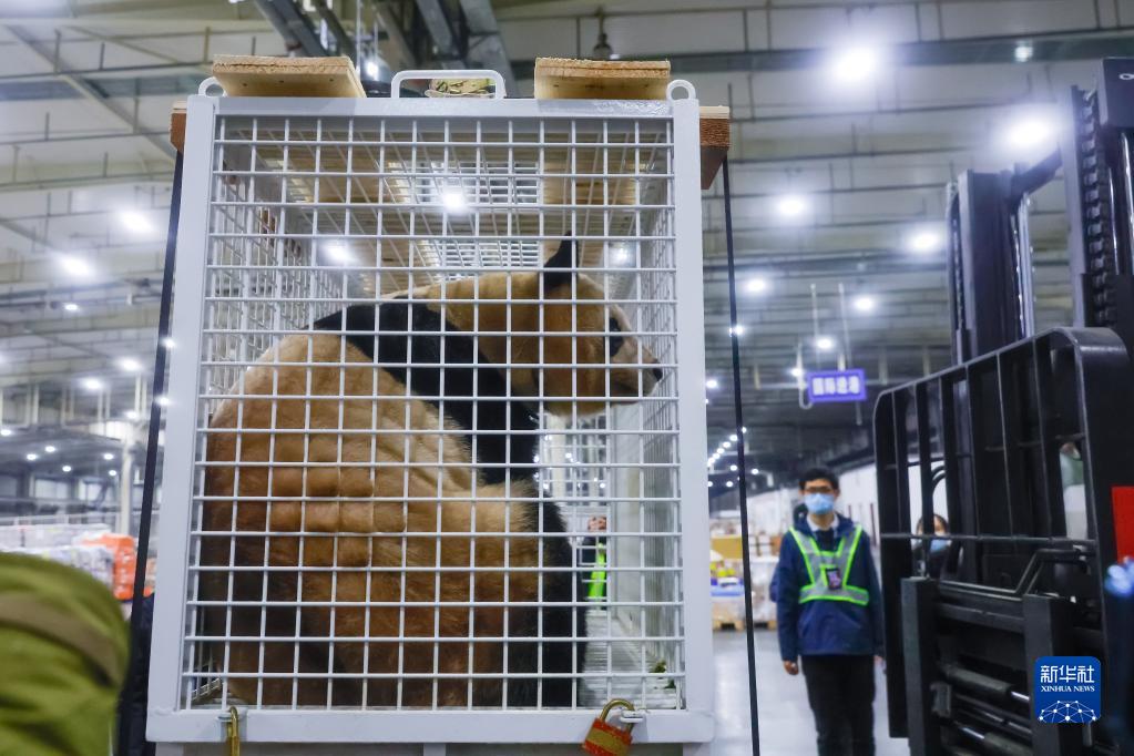 這是2月23日凌晨在成都雙流機場(chǎng)海關(guān)拍攝的運抵中國的大熊貓“櫻浜”。