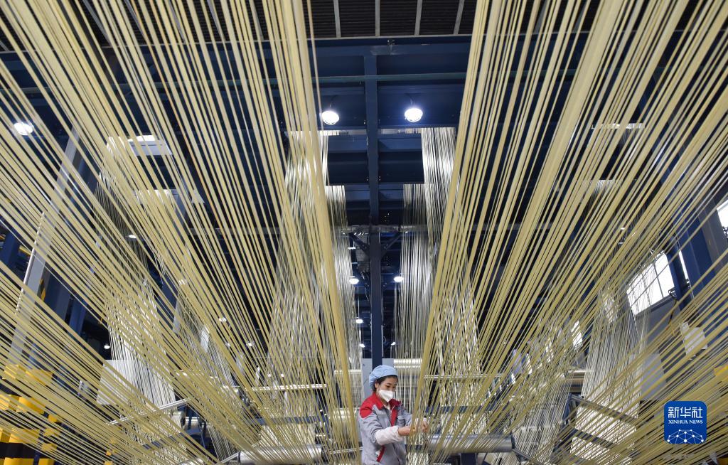 2月22日,在中復神鷹碳纖維西寧有限公司,工作人員在整理碳纖維原絲。