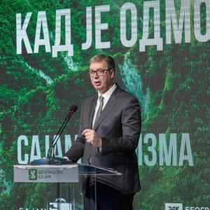 2月22日,在塞爾維亞首都貝爾格萊德,塞爾維亞總統武契奇在第44屆貝爾格萊德國際旅游博覽會(huì )開(kāi)幕式上致辭。