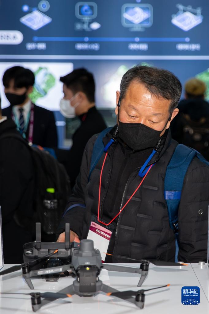 2月23日,參觀(guān)者在韓國釜山舉辦的2023韓國無(wú)人機展上觀(guān)看大疆無(wú)人機。