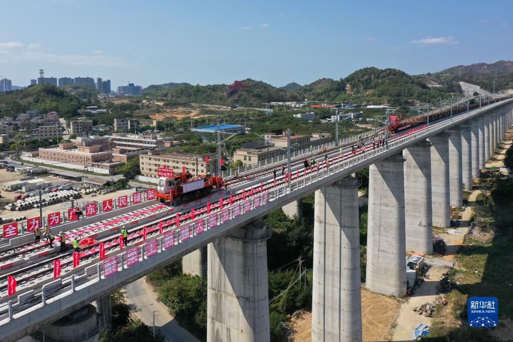 當日,中鐵五局承建的廣汕鐵路正線(xiàn)最后一組500米長(cháng)軌在汕尾東沖特大橋鋪設完成,該線(xiàn)正線(xiàn)鋪軌實(shí)現貫通。廣汕鐵路是“軌道上的大灣區”高鐵骨干網(wǎng)重要組成部分,該線(xiàn)全長(cháng)202公里,時(shí)速350公里,途經(jīng)廣州、惠州、深汕特別合作區、汕尾。全線(xiàn)通車(chē)后,廣州到汕尾運行時(shí)間將縮短至1小時(shí)以?xún)取?/p>