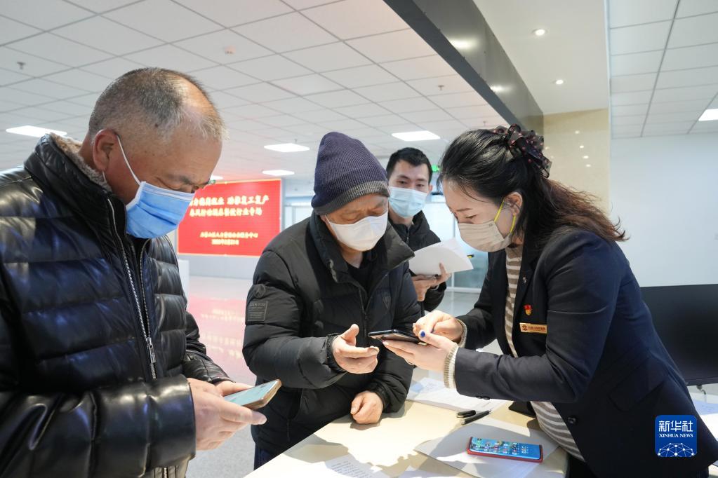 在北京市石景山區人力資源公共服務(wù)中心,職業(yè)指導師馬建穎(右一)在幫助求職者加入求職指導群,方便他們接收求職信息、獲得就業(yè)指導(2月21日攝)。