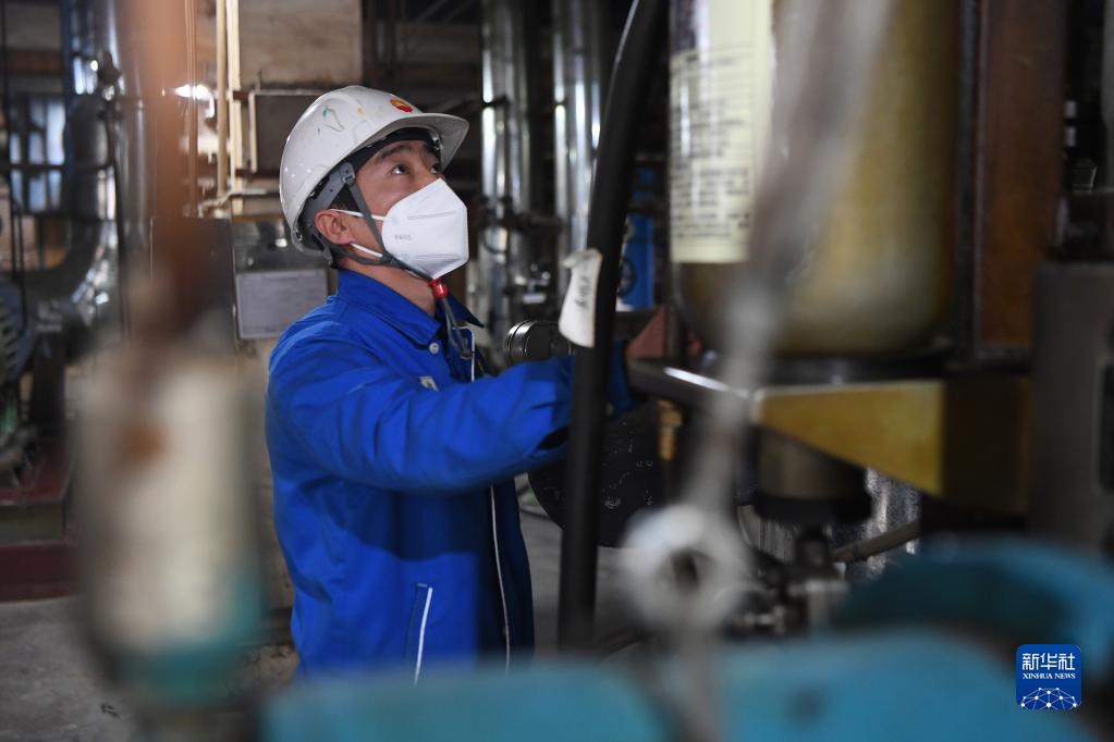 蘭州石化公司煉油運行二部運行工程師楊永納對生產(chǎn)裝置進(jìn)行日常巡檢(2月21日攝)。