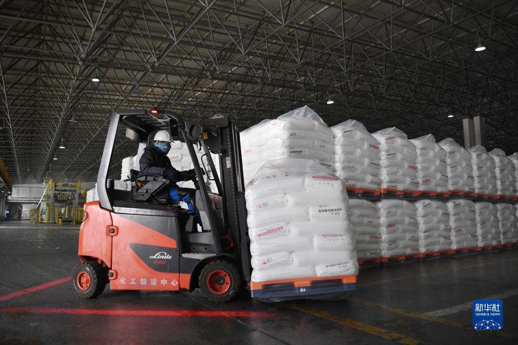 蘭州石化公司化工儲運中心工作人員用叉車(chē)進(jìn)行裝卸作業(yè)(2月21日攝)。