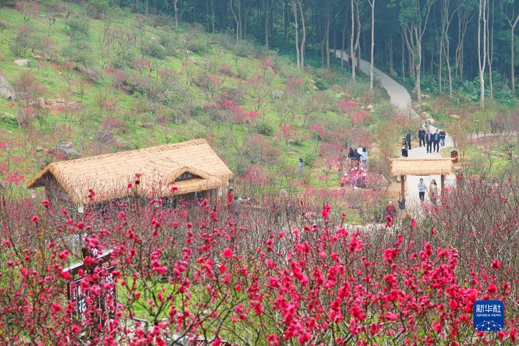 2月22日,游人在廣西南寧市青秀山景區桃花塢景點(diǎn)賞花游覽。
