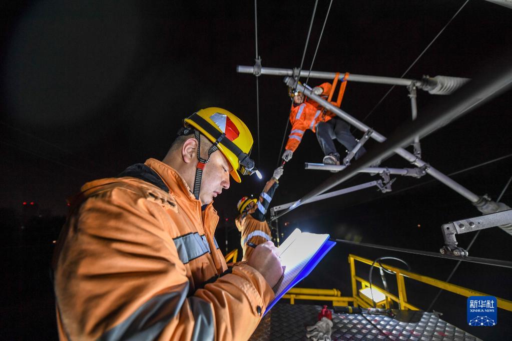 每日0至4時(shí),中國鐵路上海局集團有限公司上海高鐵基礎設施段的綜合維修工們都要在滬寧城際高鐵沿線(xiàn)對接觸網(wǎng)設備進(jìn)行全面“體檢”,守護高鐵運行安全。綜合維修工的日常工作包括接觸網(wǎng)絕緣子清掃、吊弦更換、隔離開(kāi)關(guān)檢修等。