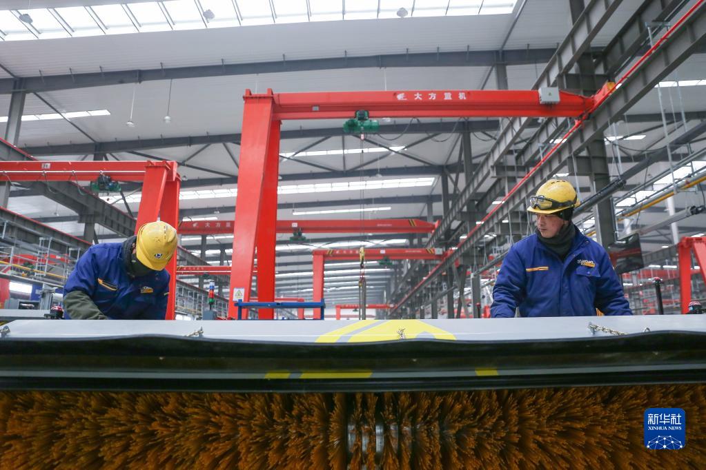 2月22日,工人在位于阜新市的徐工(遼寧)機械有限公司生產(chǎn)車(chē)間內工作。
