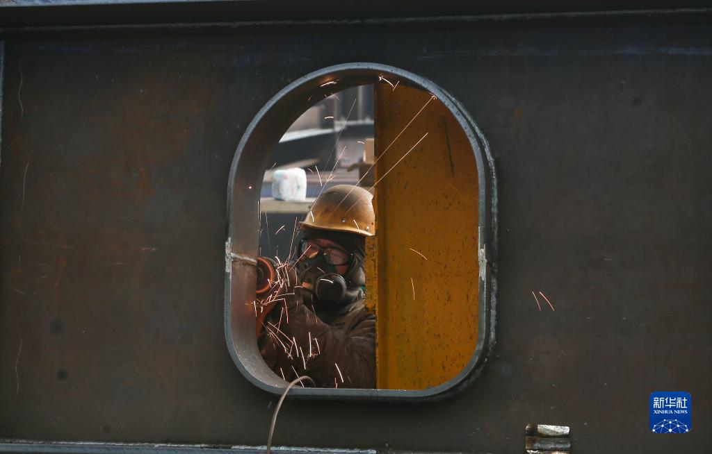 2月23日,工人在阜新市彰武縣華洲重工股份有限公司生產(chǎn)車(chē)間內工作。