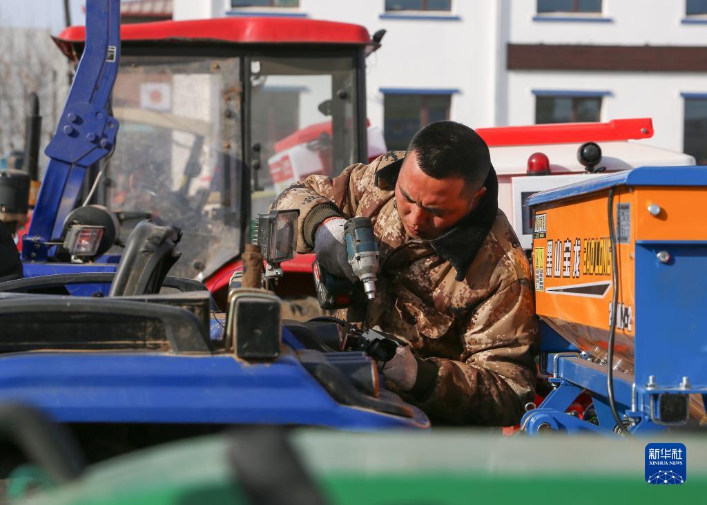 2月23日,技術(shù)人員在阜新市阜新蒙古族自治縣老河土鎮為村民檢修農機。