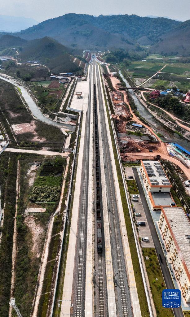 2月22日拍攝的中老鐵路磨憨站(無(wú)人機照片)。