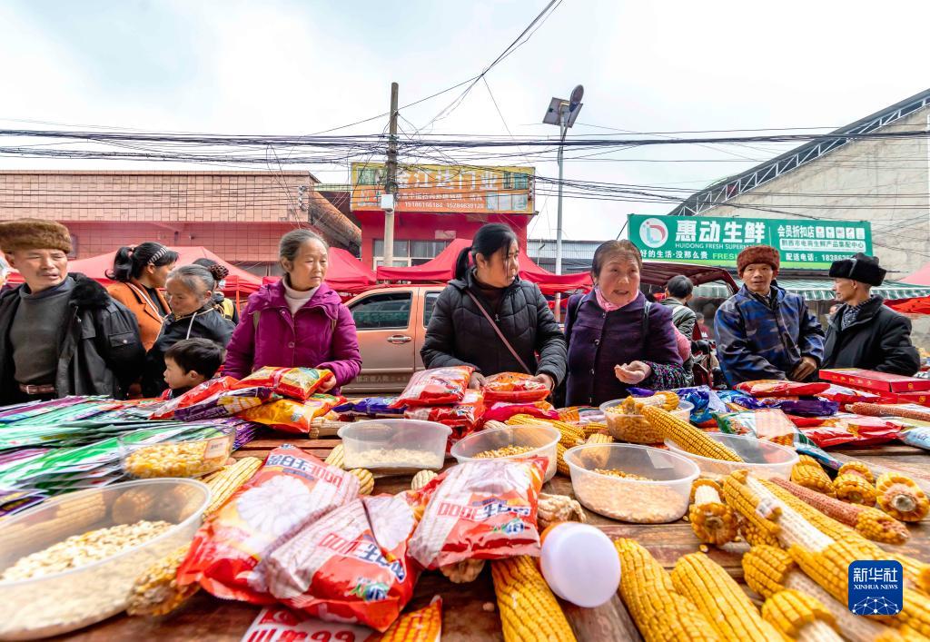 2月23日,農戶(hù)在貴州省黔西市錦星鎮集市選購玉米種子。