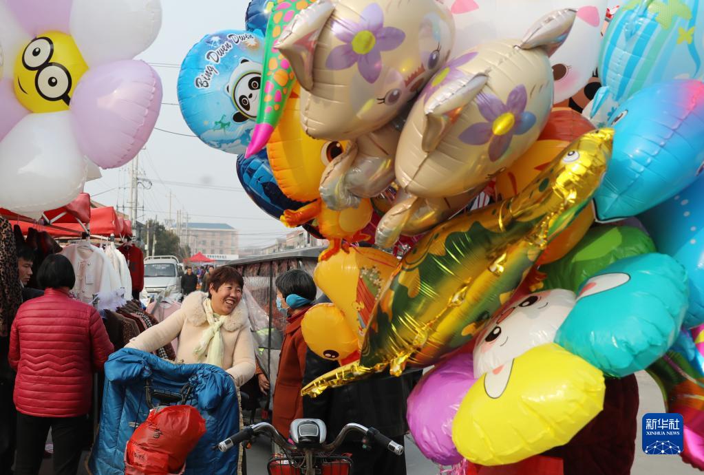 2月23日,村民在河南省焦作市溫縣番田鎮楊磊村集市上聊天。