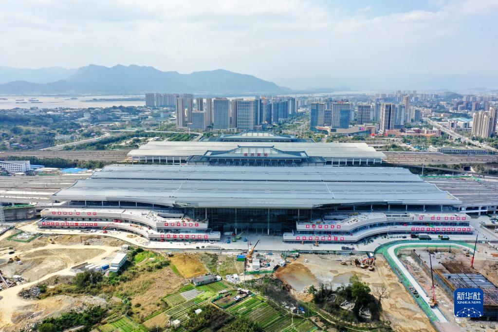 2月21日拍攝的新建福廈鐵路福州南站站房擴建工程(無(wú)人機照片)。