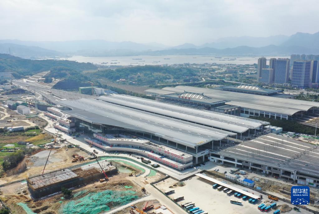 2月21日拍攝的新建福廈鐵路福州南站站房擴建工程(無(wú)人機照片)。
