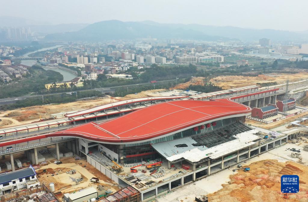 2月19日拍攝的新建福廈鐵路福清西站(無(wú)人機照片)。