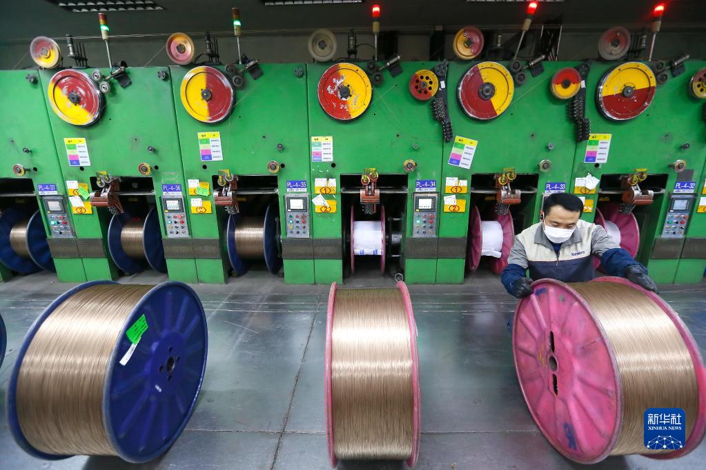 2月23日,在位于青島市即墨區科技創(chuàng )新園的青島高麗鋼線(xiàn)有限公司,工人在檢查胎圈鋼絲質(zhì)量。