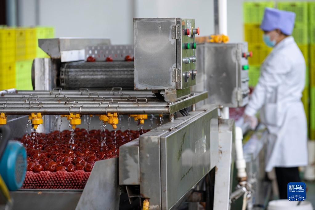 寧夏同心縣一家圓棗深加工企業(yè)內,工人在清洗圓棗(2月23日攝)。