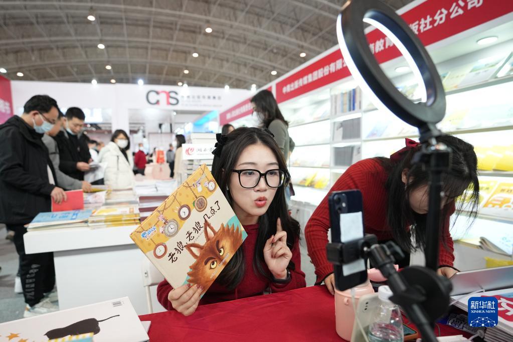 2月24日,在第35屆北京圖書(shū)訂貨會(huì )上,一名參展商工作人員在訂貨會(huì )現場(chǎng)直播,通過(guò)互聯(lián)網(wǎng)介紹書(shū)籍。