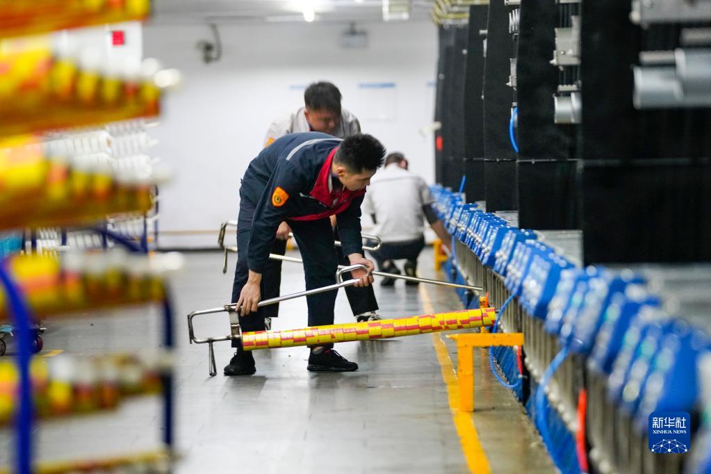 2月21日,技術(shù)工人在重慶涪陵區白濤新材料科技城華峰重慶氨綸有限公司生產(chǎn)車(chē)間內工作。