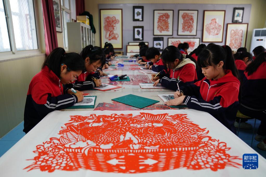 2月24日,河北邢臺經(jīng)濟開(kāi)發(fā)區景家屯小學(xué)學(xué)生在刻紙。