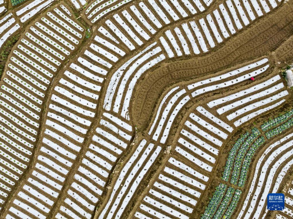 這是2月24日拍攝的貴州省安順市關(guān)嶺布依族苗族自治縣斷橋鎮壩陵村蔬菜基地(無(wú)人機照片)。