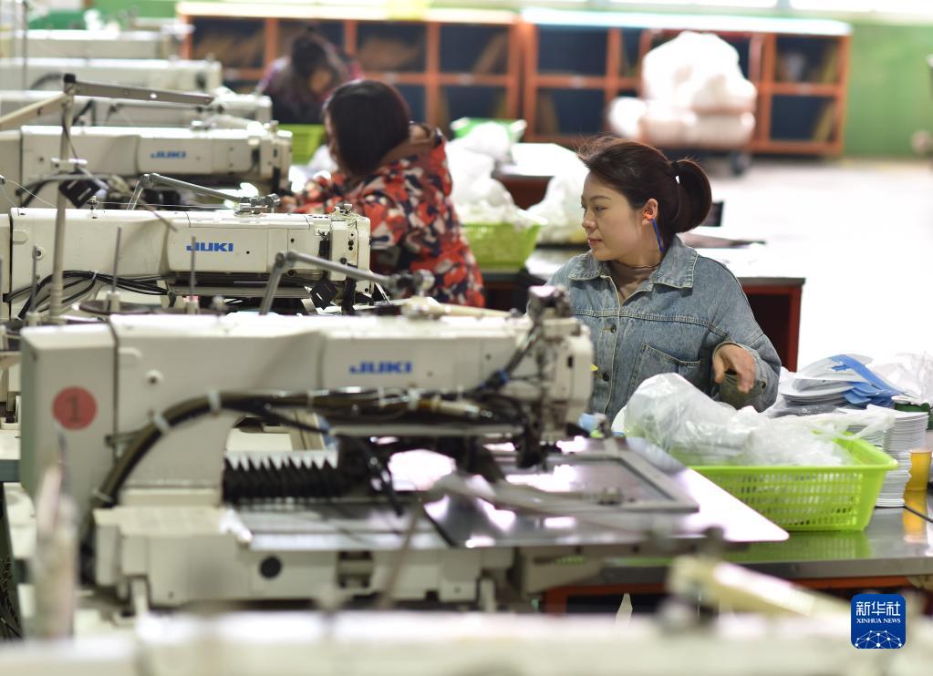 2月25日,工人在湖南省婁底市雙峰高新區一外貿制鞋企業(yè)鞋面車(chē)間忙碌。