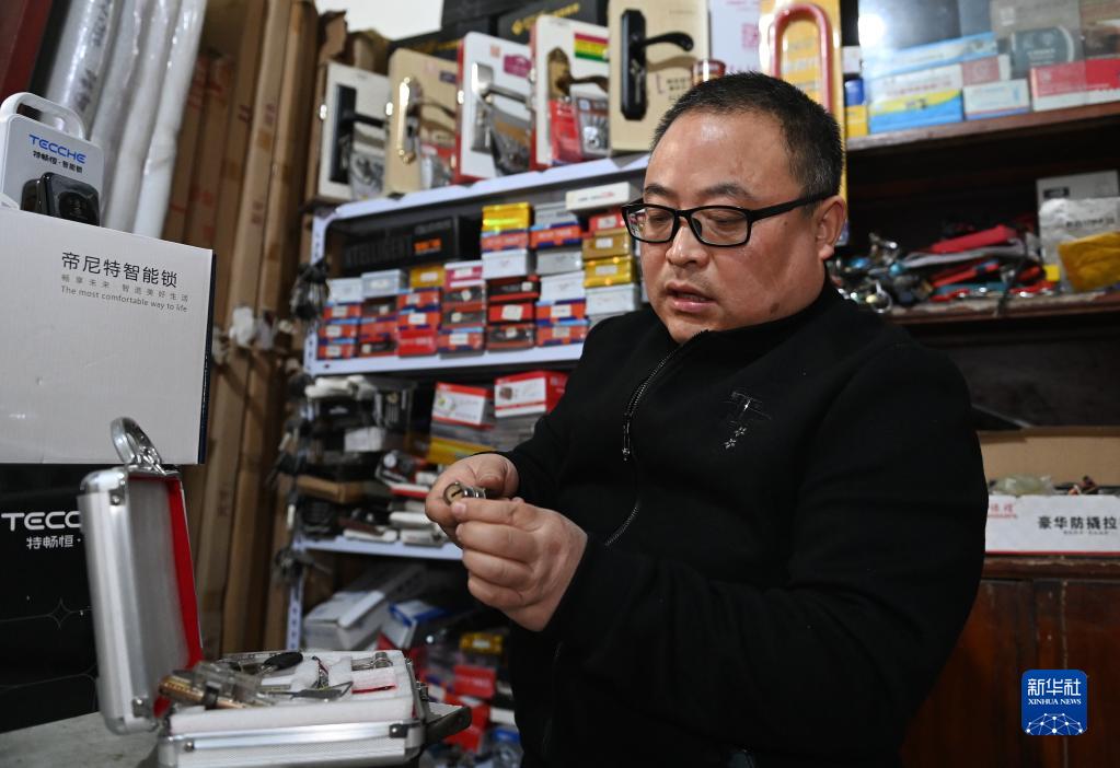 2月23日,在西安市灞橋區,殘疾人鎖匠蘇小泉練習開(kāi)鎖技術(shù)。